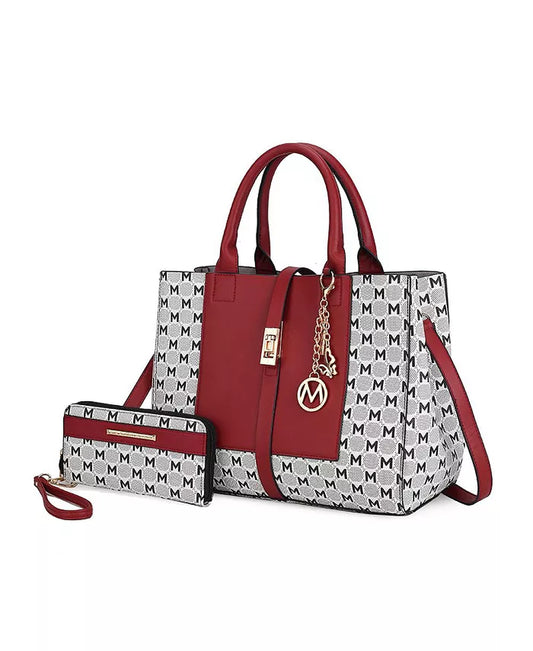 Yuliana Circular M Emblem Print Satchel Bag with Wallet by Mia K